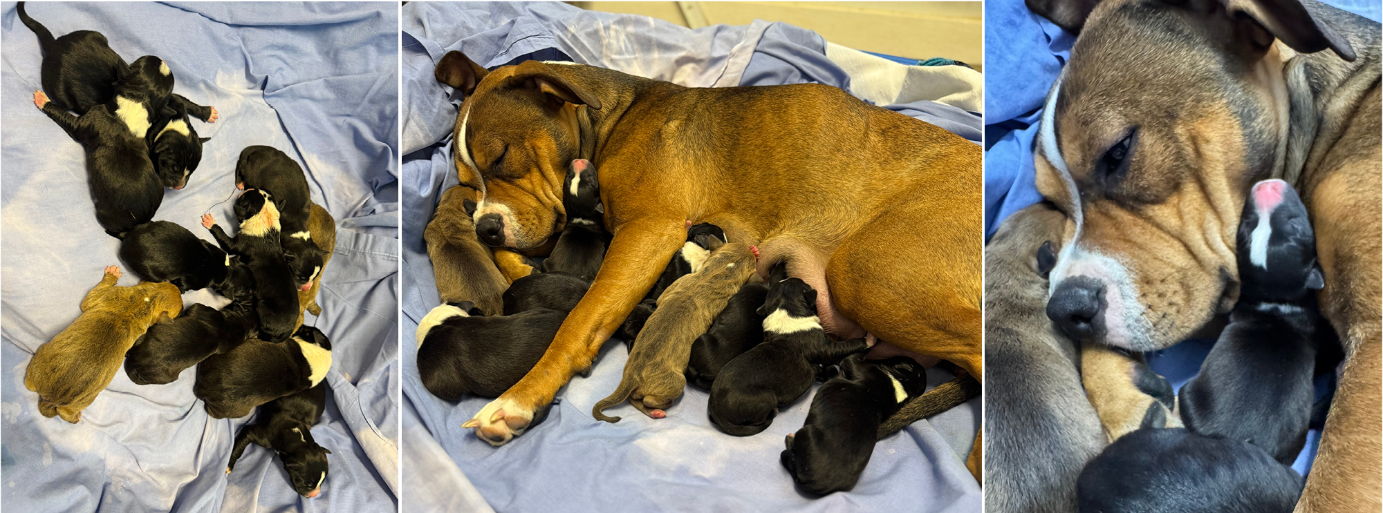 Big congratulations to Sophie at Happy Tails! 🐾 This weekend, this sweet girl welcomed 10 adorable puppies into the world, and mom and babies are all doing great. Sophie is already proving to be a loving, attentive mama, and we can’t wait to share more updates as her puppies grow. 💕